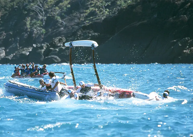 By 1985, the first official event was launched as the Queensland outrigger titles, which later evolved into the Hamilton Island Cup. With the sport’s rising popularity, the event grew into a four-day paddling festival featuring thousands of competitors. This growth was in part due to the founder's innovative concept, which was to offer free flights to the winners of the Molokai Crossing, the Molokai Hoe canoe race, considered the world championships of the sport. This was the beginning of an international and national paddling partnership that continued for more than 20 years.